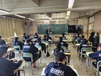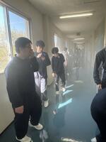 火災の発生を想定した避難訓練を実施しました。火災に関する動画を見て事前学習をした後、非常ベルが鳴り緊急放送が流れました。先生の指示の下、2分12秒で全校生徒の避難が完了。全体的に速やかで私語なく行動できました。その後、4階の教室に移動して煙体験を行いました。真っ白な煙で視界がゼロの中、ハンカチで鼻と口を覆ったり姿勢を低くしたり・・・本当の火災の現場では有毒な煙や炎の熱さなどが加わりもっと過酷な状況です。その恐ろしさや命を守ることについて、皆が考える機会になってほしいと思います。