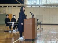 明日からの修学旅行に向けて結団式を行いました。代表の生徒が順番に注意事項や目標などを発表し、皆真剣に聞いていました。今日の時点で体調を崩している生徒はいないようですが、今晩しっかりと休養をとって明日元気に登校してほしいと思います。修学旅行は、学校を離れて行う教育活動の一つです。普段はなかなかできない体験を通して多くのことを学び、成長につながるよう期待しています。