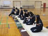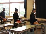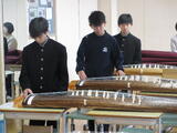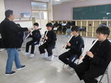 1年生の音楽の授業で、函館市が実施している「文化芸術アウトリーチ事業」による和楽器体験を行いました。三曲とは「三味線・琴・尺八」の3つです。生徒たちは3班に分かれて、この3つを順番に体験しました。日頃触れる機会のない楽器ばかりですが、講師の方に教えていただくうちにコツをつかんで上手に演奏する生徒もいました。「和楽器の音色が好き」と感じた生徒もいるかも知れませんね。このような体験を通して、日本の伝統文化への関心が高まれば嬉しく思います。